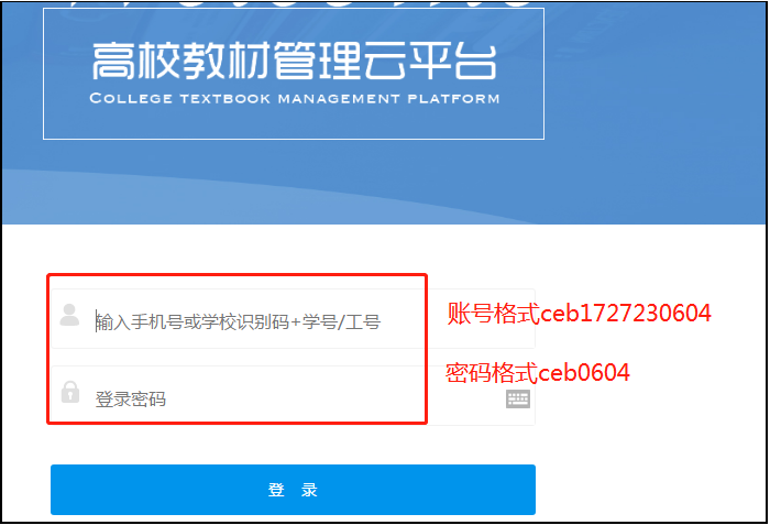 学校已帮每位学生设置好登录平台的账号和初始密码。账号为:学校识别码+学生学号(格式:ceb1727230604),初始密码:学校识别码+学生学号后四位数(格式:ceb0604)