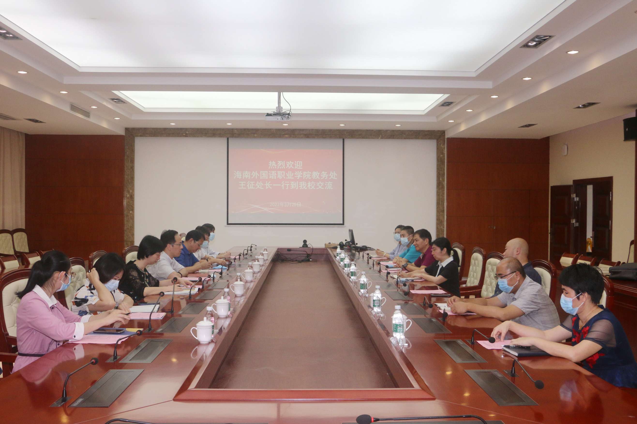 3月25日下午,海南外国语职业学院教务处处长王征一行7人前来2138CC太阳集团,就教务日常管理工作进行了交流。2138CC太阳集团教务处副处长马红主持本次交流会。